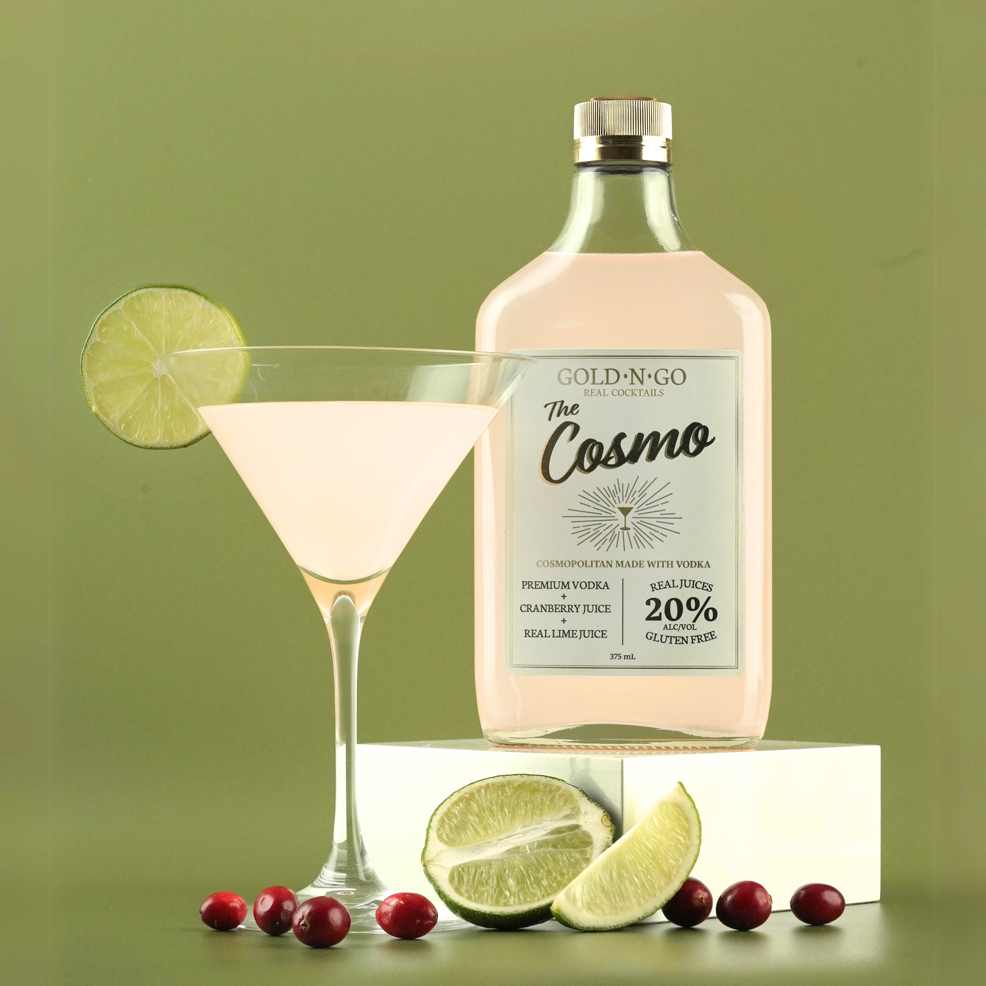 Premium Vodka, Real Cranberry Juice and Real Lime Juice make up this classic Cosmo with a sweet twist. Real fruit juices blend together for a refreshing balance of sweet and citrus.